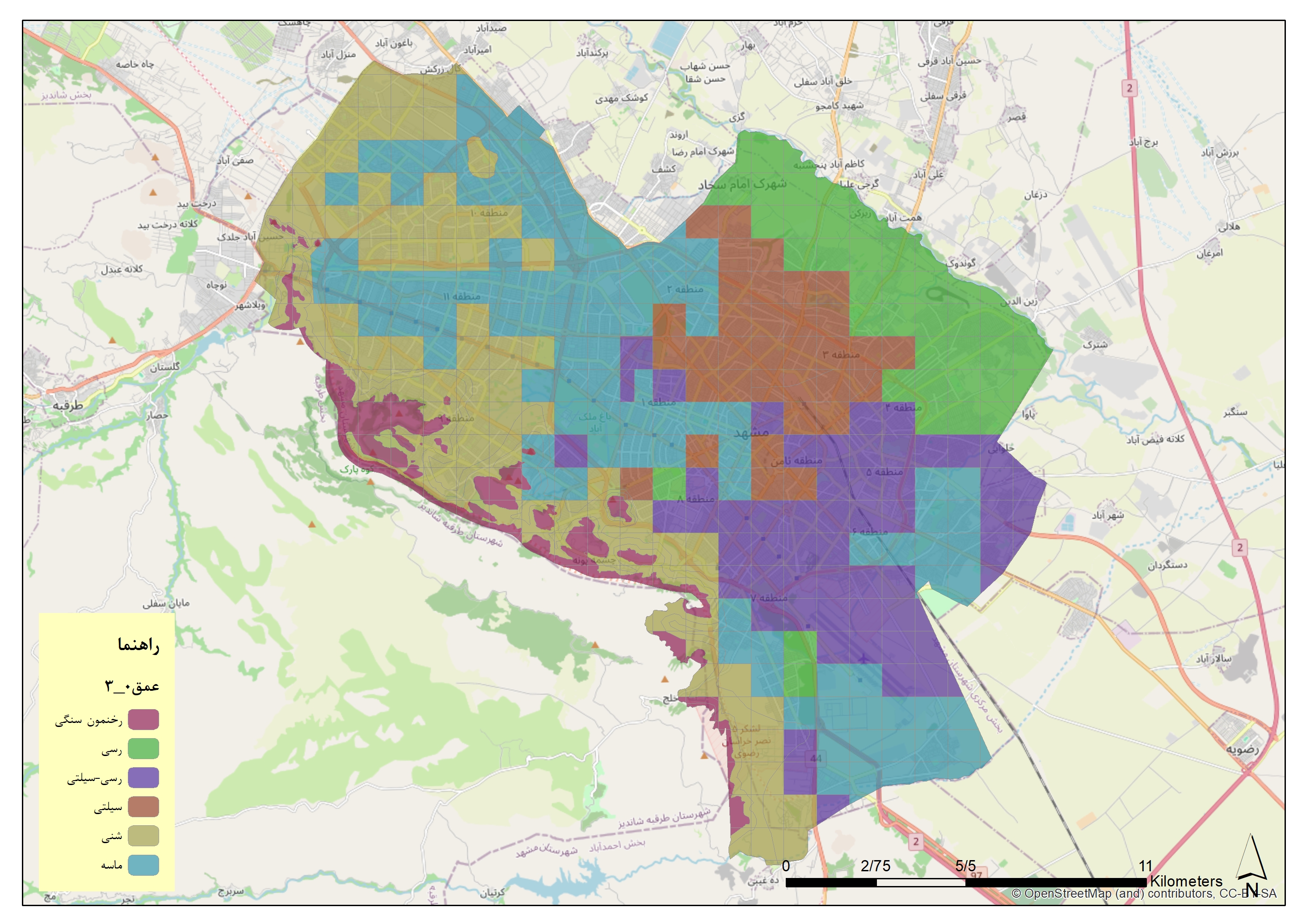 کاربرد اصلی این لایه بافت خاک در حوزههای مهندسی عمران و برنامهریزی شهری است. دادههای این لایه مبنای تحلیل فرونشست زمین، ارزیابی ریسک خاکبرداری، تعیین نوع فونداسیون مناسب برای سازههای مختلف و بررسی ریسک زمین قبل از احداث پروژههای بزرگ است. لایه عمق خاک مشهد همچنین برای مطالعات ساختوساز، مدیریت منابع خاک و پیشبینی ریسکهای مرتبط با خصوصیات زمینشناسی ضروری میباشد.